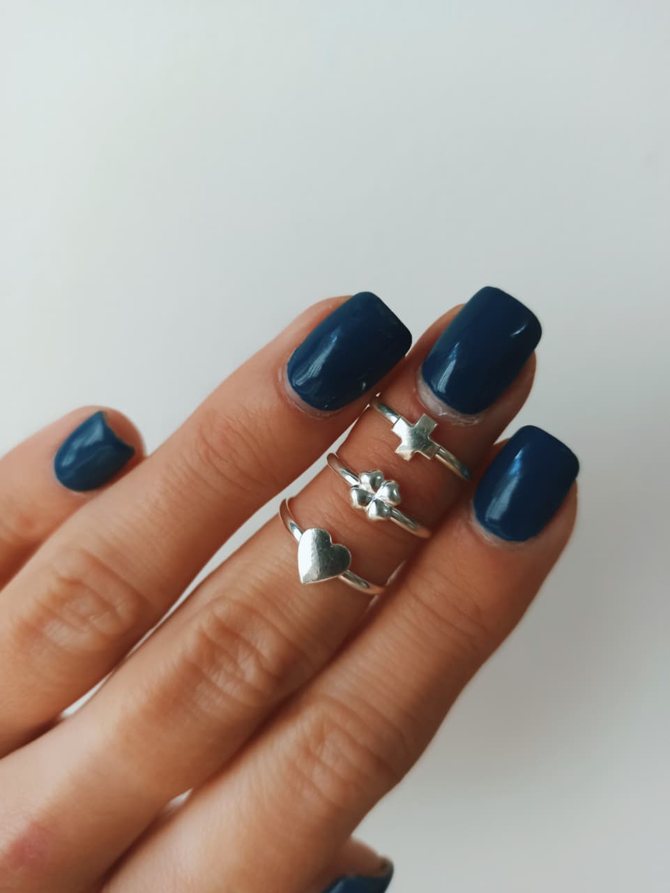 Anillos x3 de plata 925. Forma cruz equilibrio, trebol y corazon chato. De nena o media falange, talles del 4 al 11 .