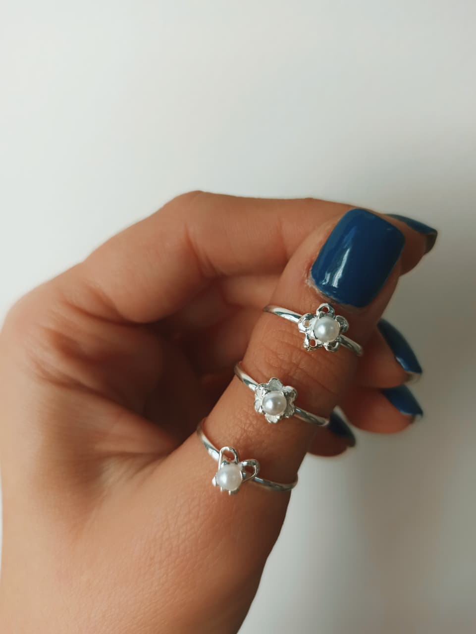 Anillos x3 de plata 925 fundicion con perla. Formas surtidas, colores surtidos. Consultar medidas